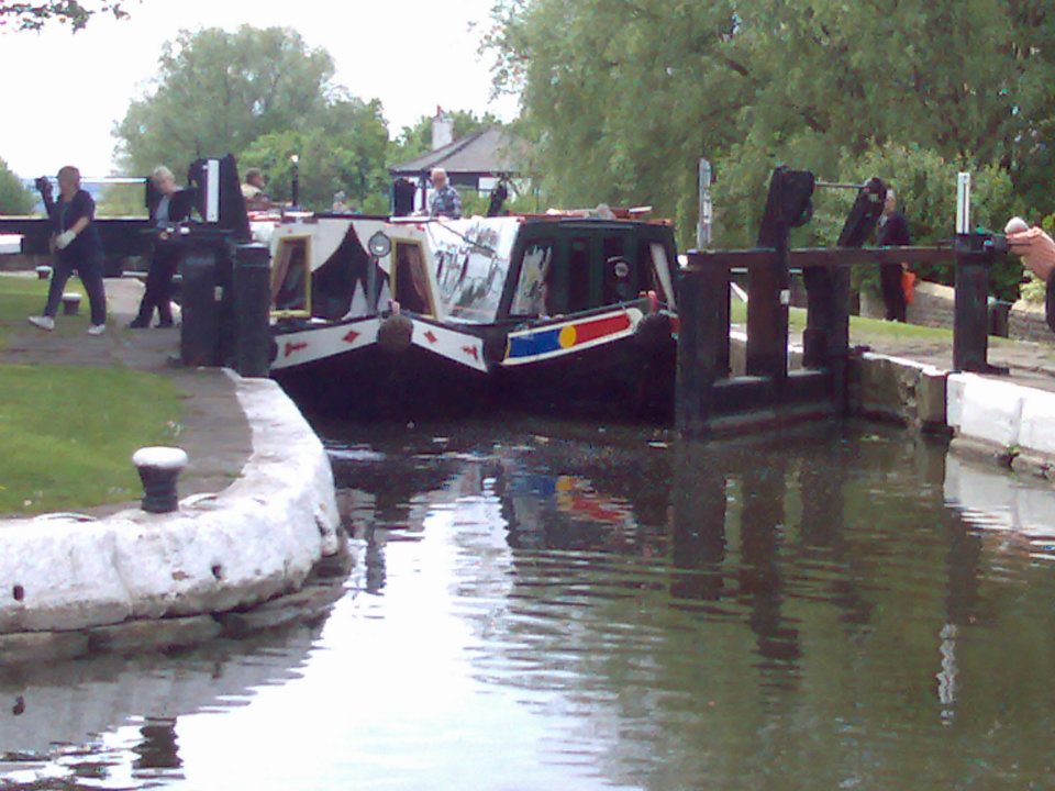 Boats leaving the Top Lock on the Wigan Flight.