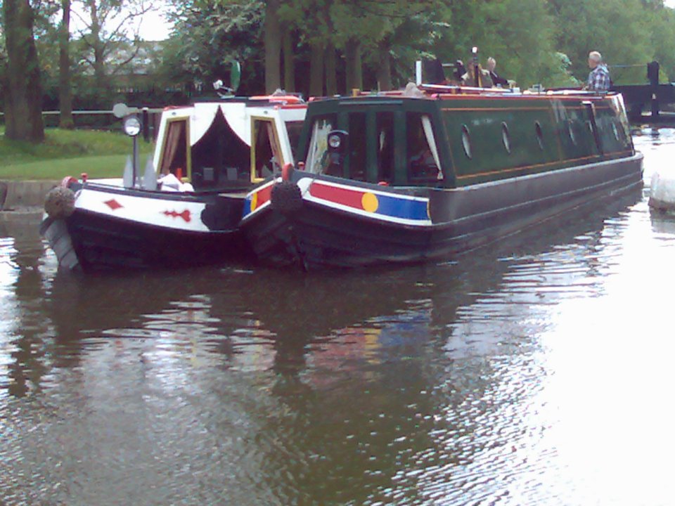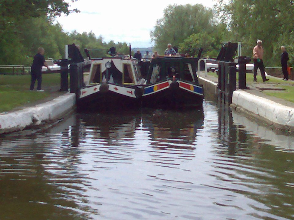 Boats leaving the Top Lock on the Wigan Flight.